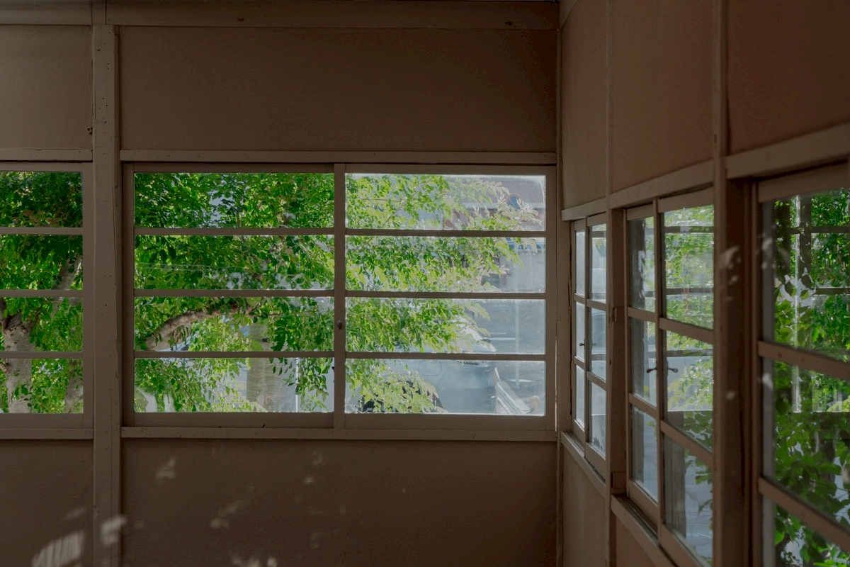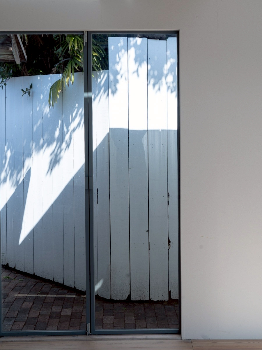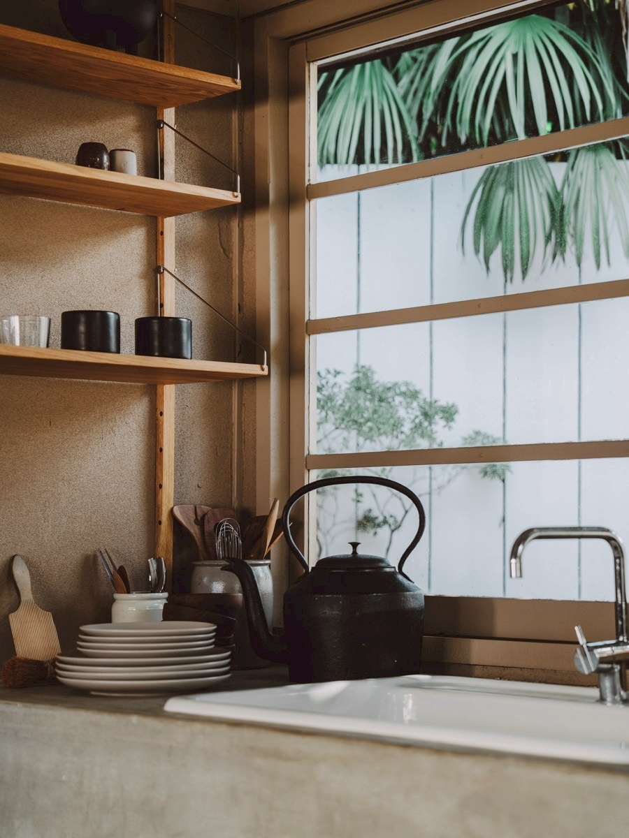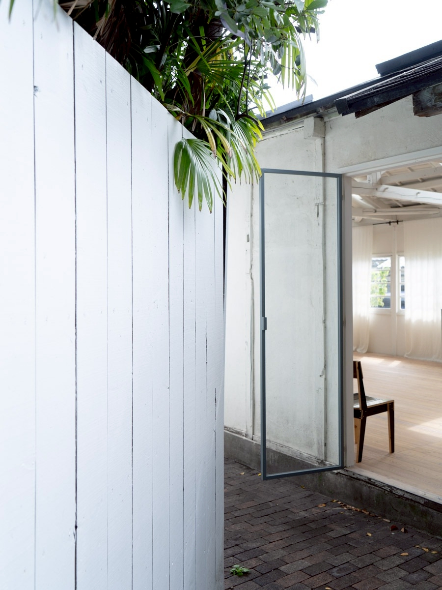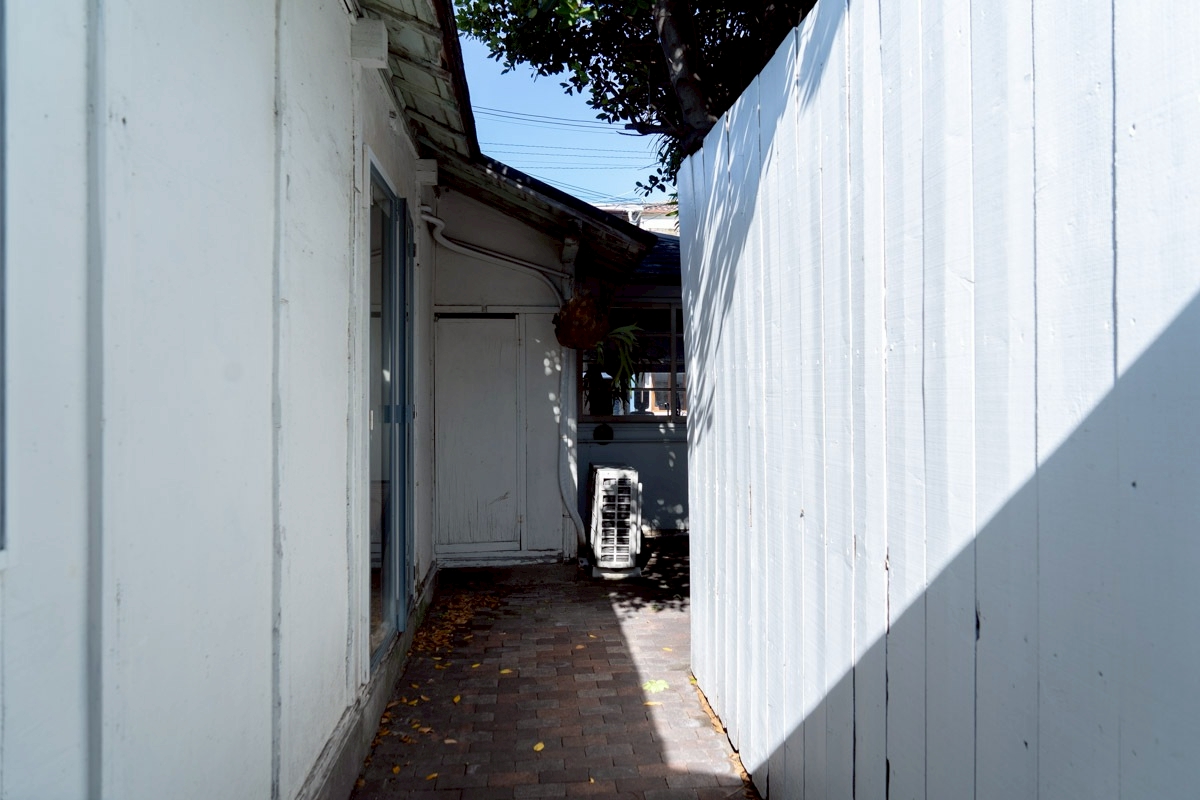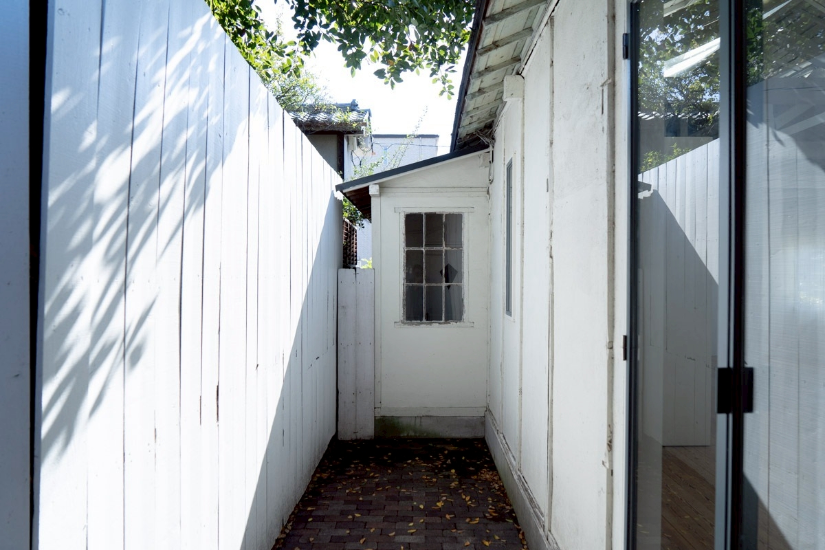 キッチンの窓からのぞめる中庭の路地。スタジオ①から外に出られます。