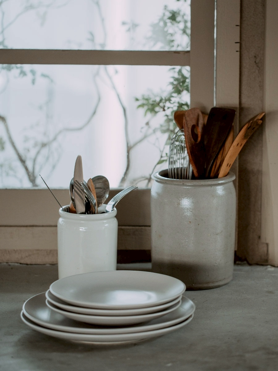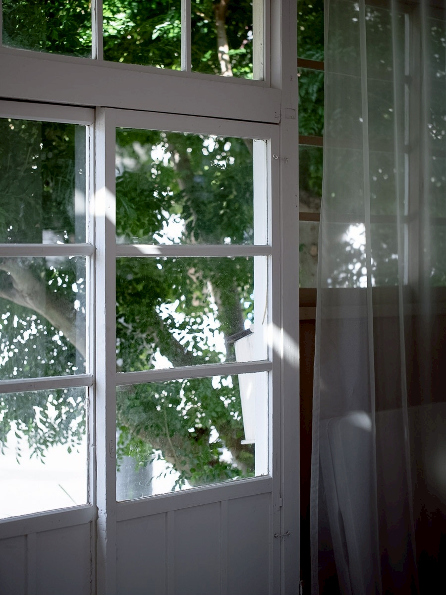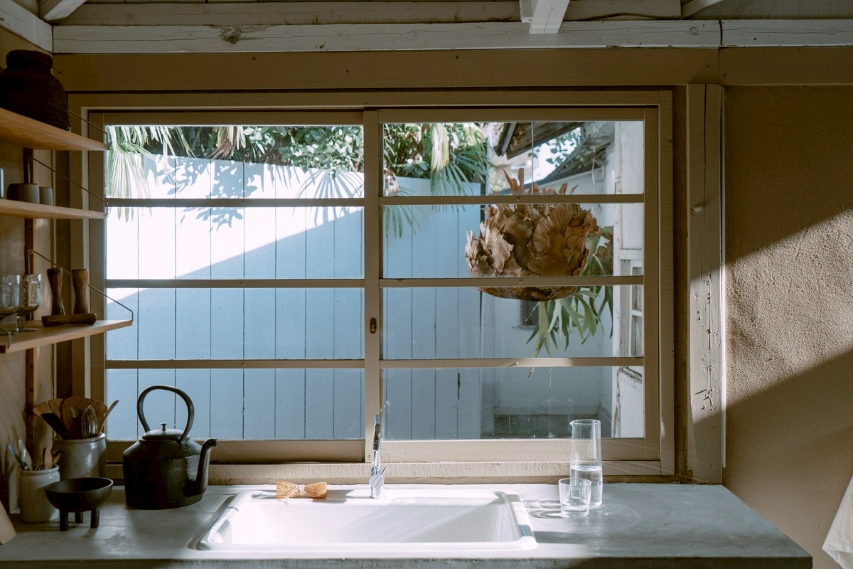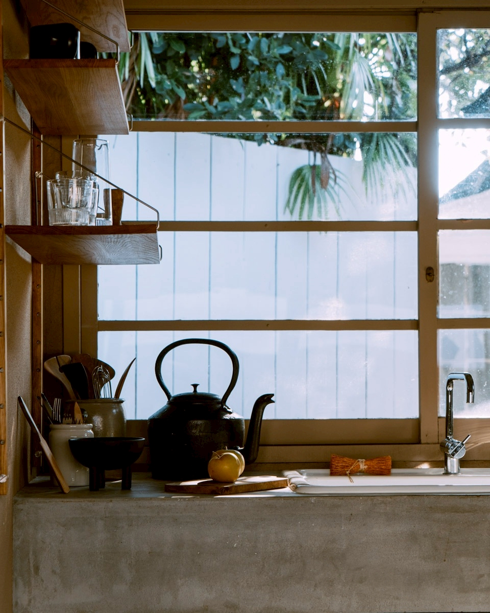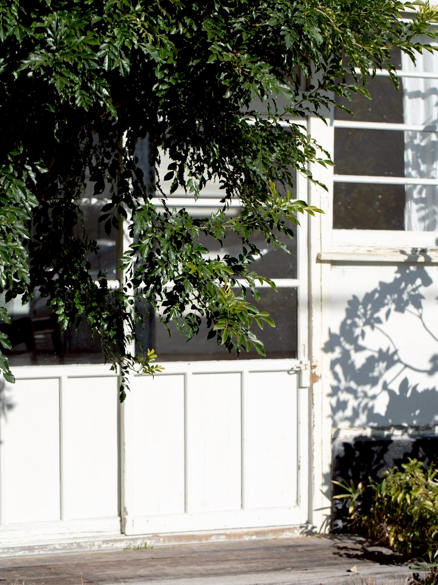 キッチンの窓からのぞめる中庭の路地。スタジオ①から外に出られます。
