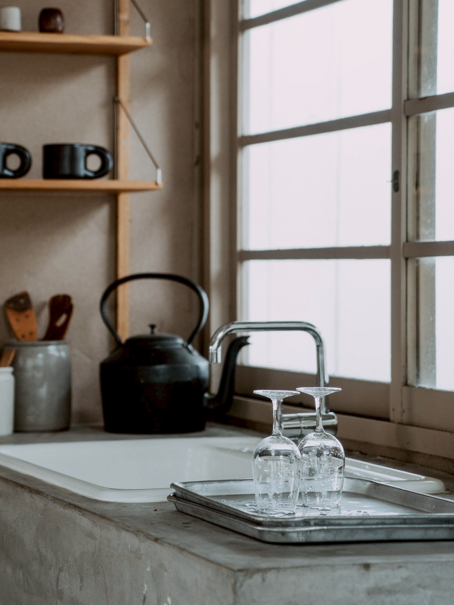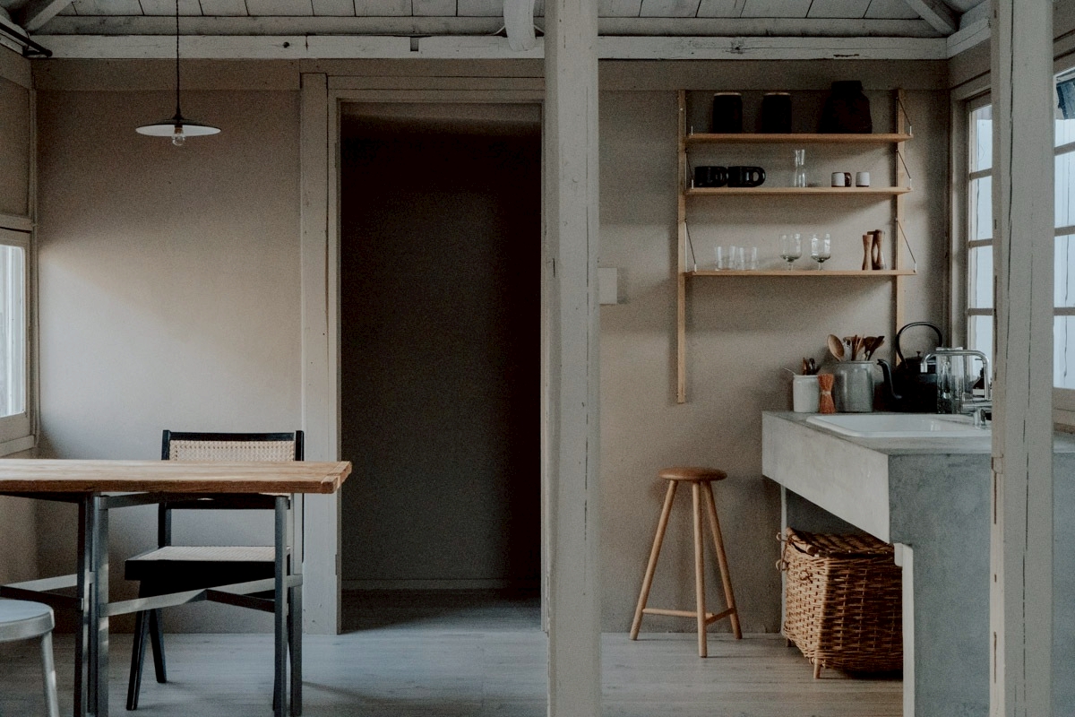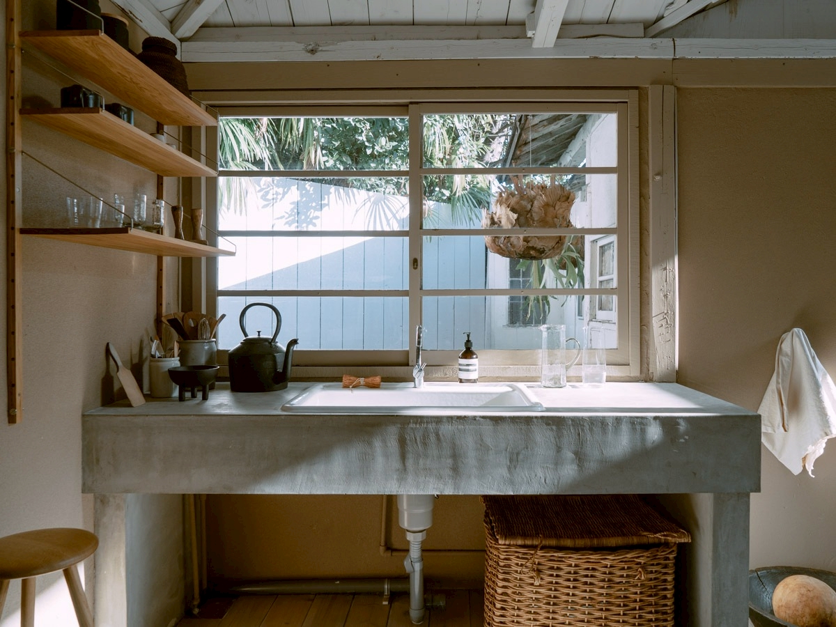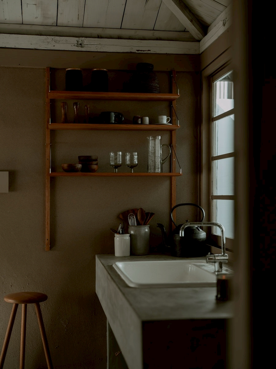 【キッチン】コンロはありません【シンク】ホーロー(白色)【壁付け棚】高さ調整可【床】木塗装