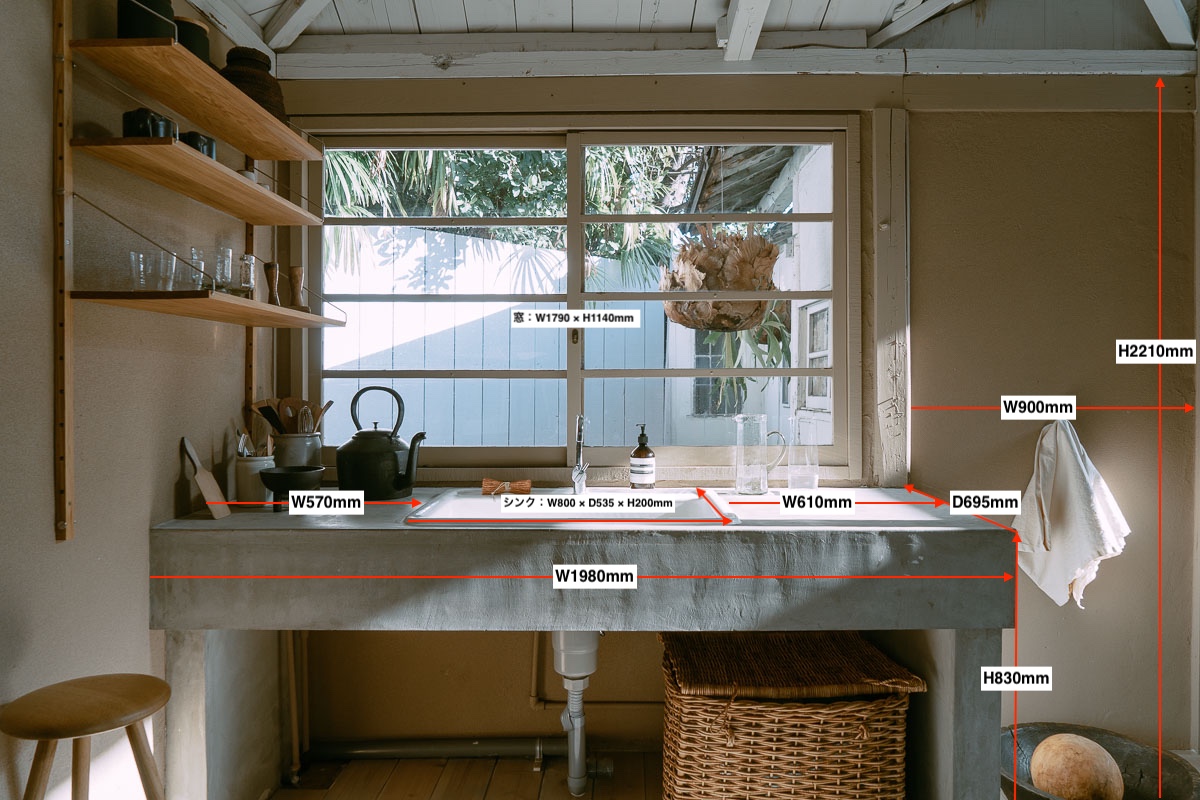 自然光がたっぷりと入る、静けさと温もりのあるキッチン空間。